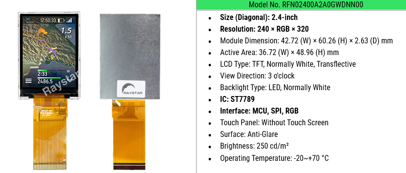 2.4-inch 240Ă—320 Transflective TFT LCD Module